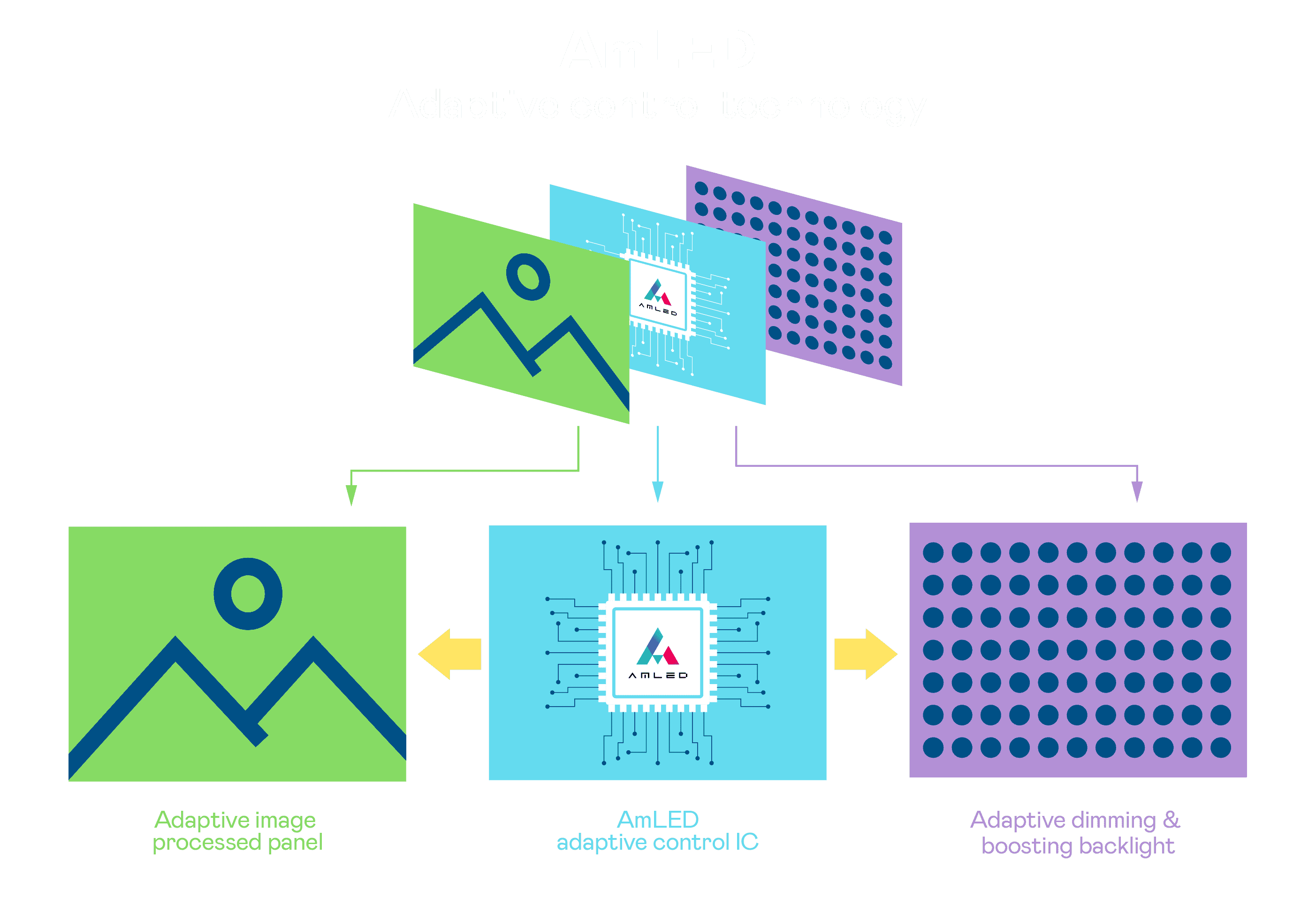 透过动态影像处理和 Mini LED 背光模组的动态对比及峰值亮度调变,,,AmLED 显示技术精准细致的局部调光效果达到超过 1,000 nits 的超高亮度表现,,,亮部更明亮、、、暗处更深邃,,,呈现真实黑色中的亮度以及平滑灰阶,,,,打造出具层次分明的精致光影细节。。。。