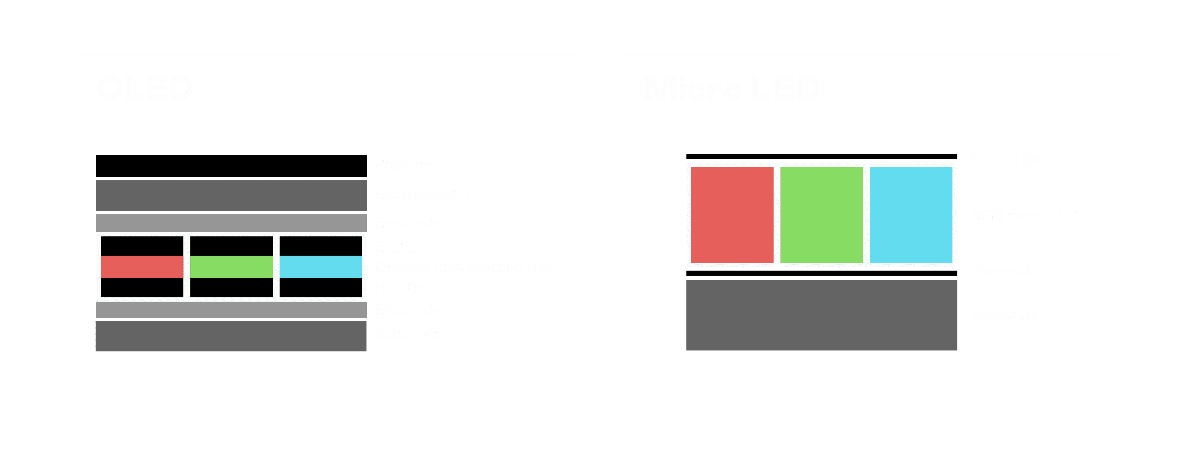 以 LED 做为显示画素,,,,可让 LED 的发光效率发挥到极致,,,,从而让显示器具备优异的亮度表现,,,不论是在户外或室内,,均具备出众的显示效果。。。。同时,,,,与使用有机材料的 OLED 相比,,LED 具备更稳定、、寿命更长的特性,,,不仅不会有画面烙印问题,,,,而且更不容易出现故障、、坏点。。