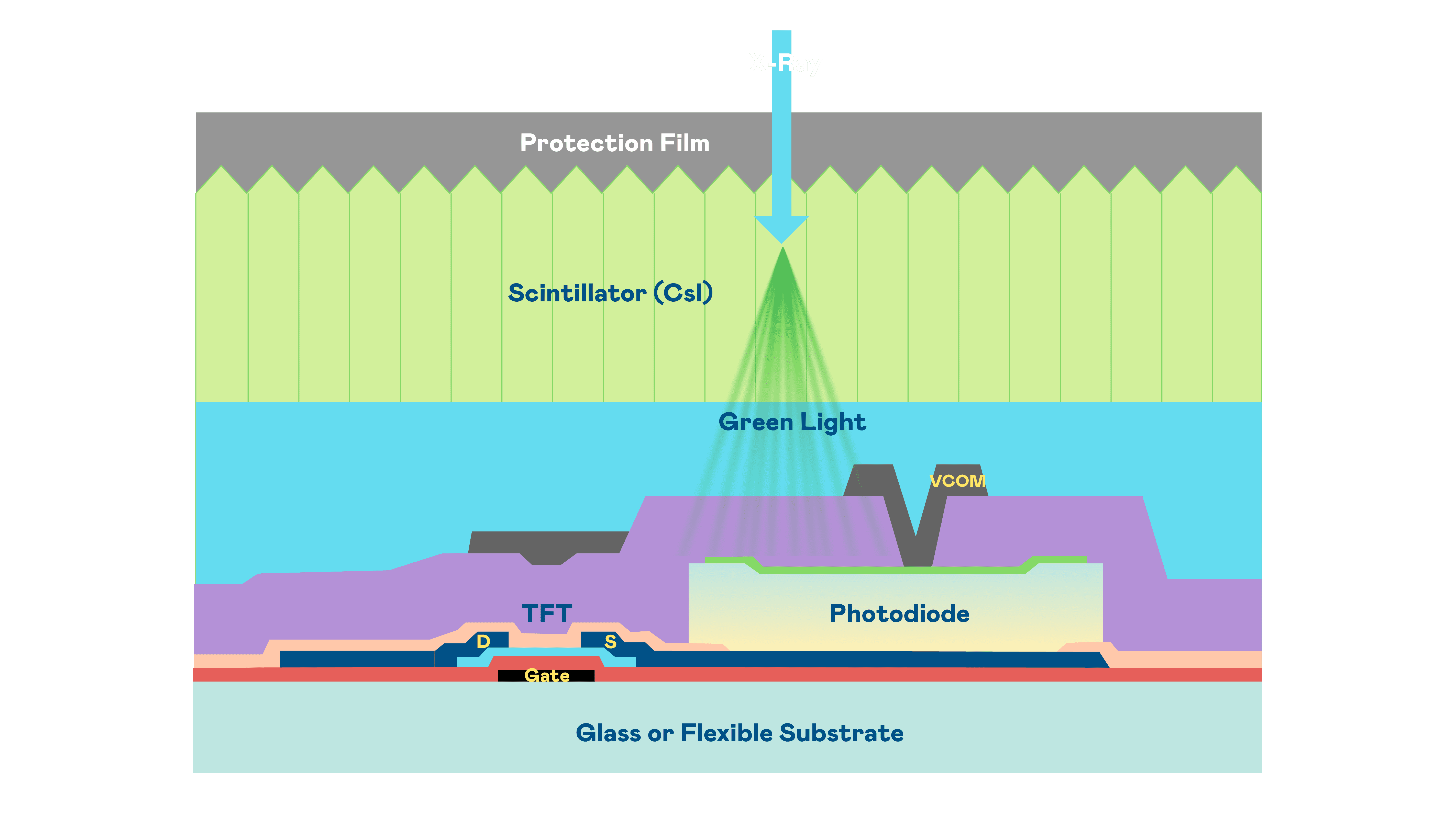 z6mg·人生就是博的X光影像感测阵列使用薄膜电晶体 (TFT) 作为每个像素的读取开关,,,搭配光电二极体(Photodiode)的光电转换元件,,,,用以感测X光影像讯号。。。。
